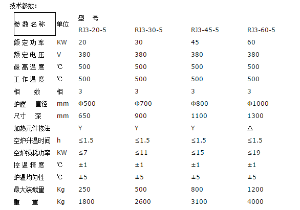 RJ3系列井式鋁合金時效爐結構,外殼由鋼板和型鋼制成圓柱形爐體,爐蓋內面采用不銹鋼板制成。爐襯采用超輕質節能微珠耐火保溫磚砌筑。爐襯與爐殼夾層置硅酸鋁超長纖維氈保溫,間隙填充膨脹保溫粉。屬于典型節能型爐襯結構,節電30%-40%。電阻絲采用0Cr25Al5高電阻合金絲繞成螺旋狀安裝在爐膛的擱絲磚上。爐膛內放置有不銹鋼裝料筐。爐蓋采用手動扛桿升降,大型爐蓋采用電動變速機升降。為了使工件均勻加熱,在爐蓋上安裝有耐熱不銹鋼軸和風葉制成的熱風循環風機,工件在加熱過程中,熱空氣在鋁合金時效爐內上下高速循環以保證工件均勻加熱。為保證操作安全在升降機構附近裝有限位開關,此開關與鋁合金時效爐控制柜電源聯鎖,爐蓋關閉時(工作時)接通電源。當爐蓋開啟時限位開關即切斷控制電源,因此加熱元件的電源同時切斷,以保證安全操作。井式鋁合金時效爐出廠時配套自動控溫柜,熱電偶。